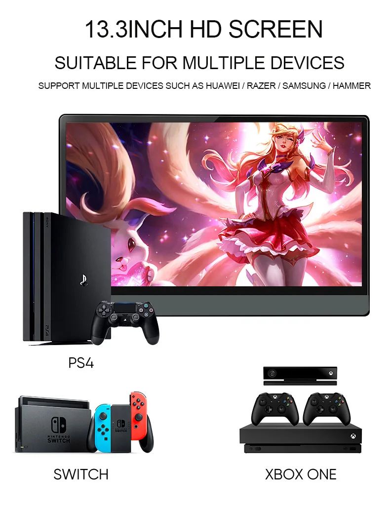 Special Offer 13.3 بوصة شاشة رصد المحمولة 1080P HDR IPS شاشة عرض ألعاب مع Type-C Mini HDMI للهاتف المحمول الكمبيوتر ماك Xbox PS4 Discount 15% Today!