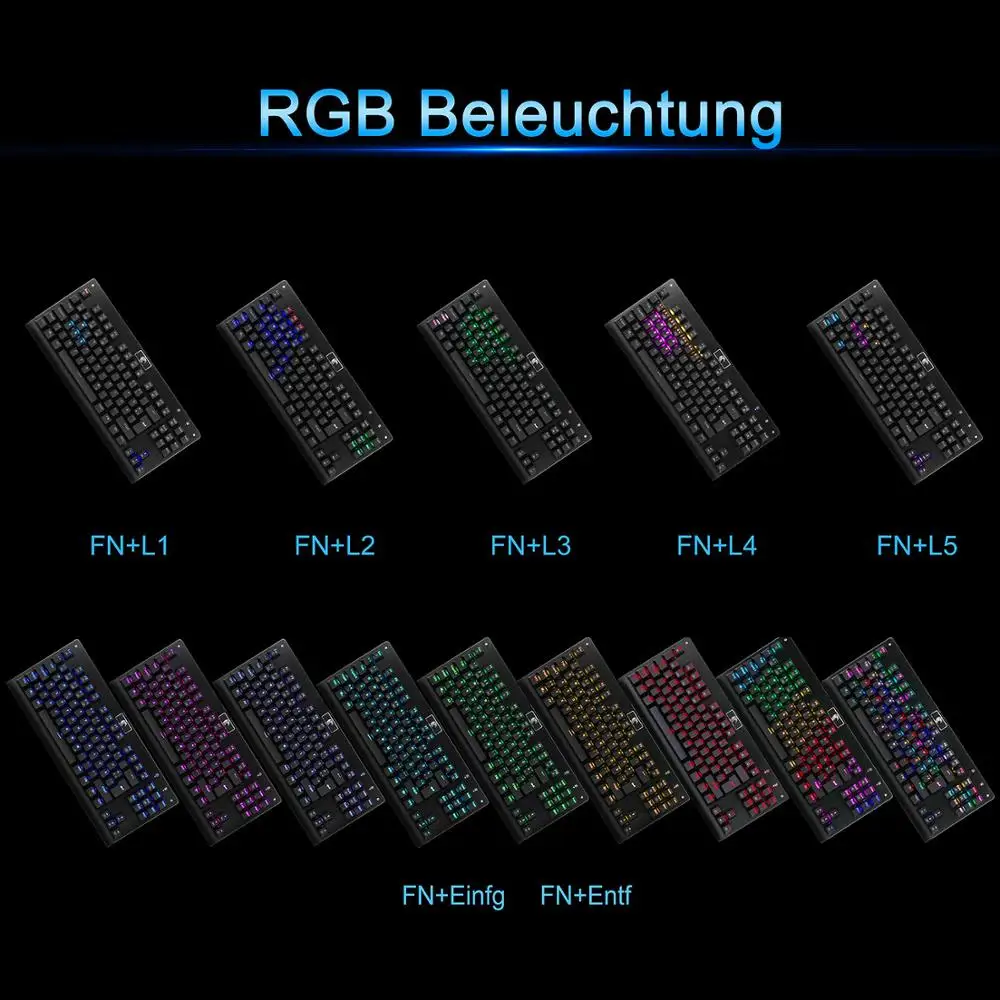 Special Offer Z77 TKL الميكانيكية لوحة مفاتيح الألعاب RGB الخلفية 88 مفاتيح مكافحة الظلال الأزرق مفاتيح الألومنيوم تخطيط لوحة المفاتيح الألمانية ، أسود Discount 10% Today!