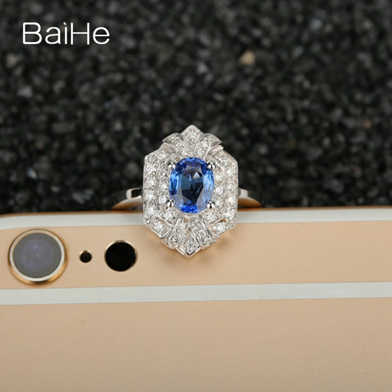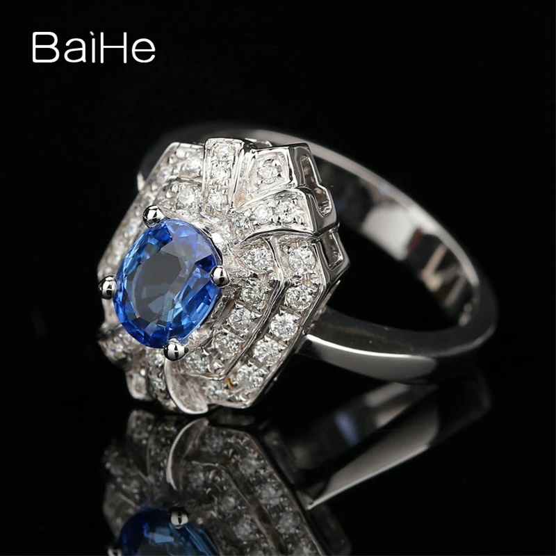 Special Offer BAIHE الصلبة 18k الذهب الأبيض المعتمدة البيضاوي قص 1.2ct 100% الياقوت الطبيعي الزفاف النساء العصرية الجميلة مجوهرات خاتم الموضة Discount 0% Today!