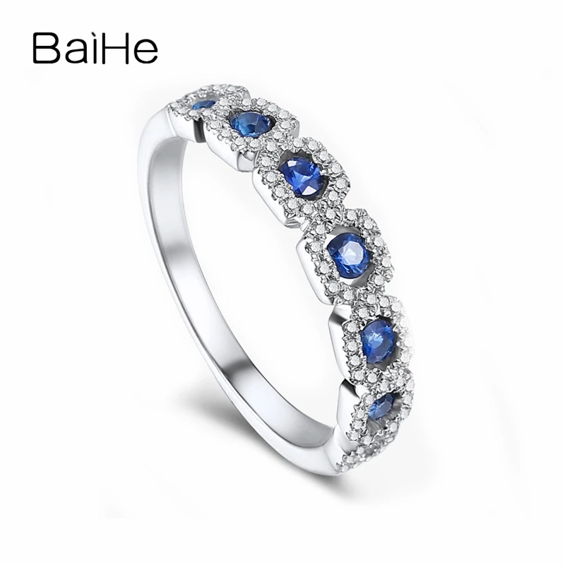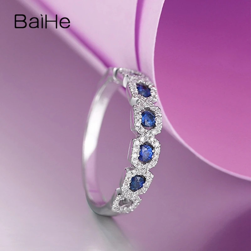 Special Offer BAIHE الصلبة 18K الذهب الأبيض 0.32CT H/SI الجولة الطبيعية خاتم من الياقوت الأزرق للنساء 0.12ct الماس الزفاف العصرية غرامة مجوهرات رجل خاتم Discount 22% Today!