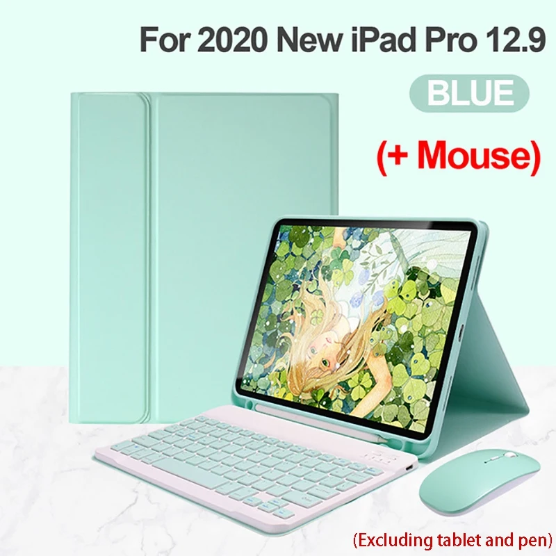 Special Offer للآي باد برو 2020 بوصة جديد 12.9 (لوحة مفاتيح لاسلكية + ماوس + حافظة + قلم + زجاج مقسى + ملصق كرتوني + حقيبة) Discount 18% Today!