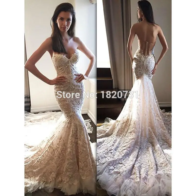 Special Offer فستان زفاف جديد موضة 2020 مطرز بالدانتيل على الكتف بدون ظهر فستان زفاف على شكل قلب حورية البحر فستان زفاف Discount 15% Today!