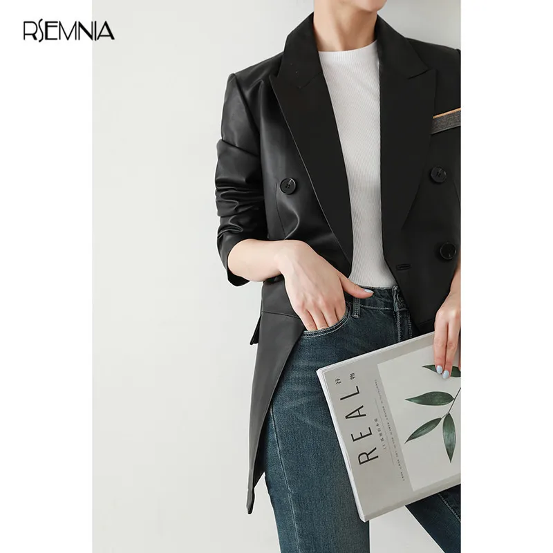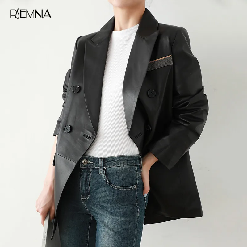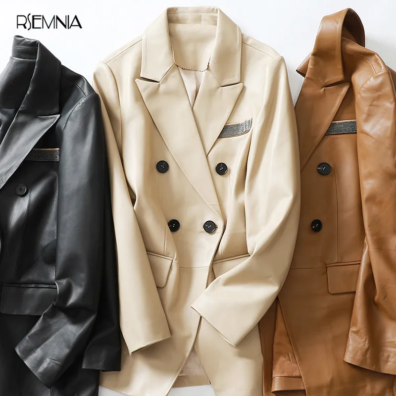Special Offer جديد 2020 جودة أنيقة دعوى طوق مزدوجة الصدر الخرز الملابس جيب معطف جلد الغنم الإناث Discount 32% Today!