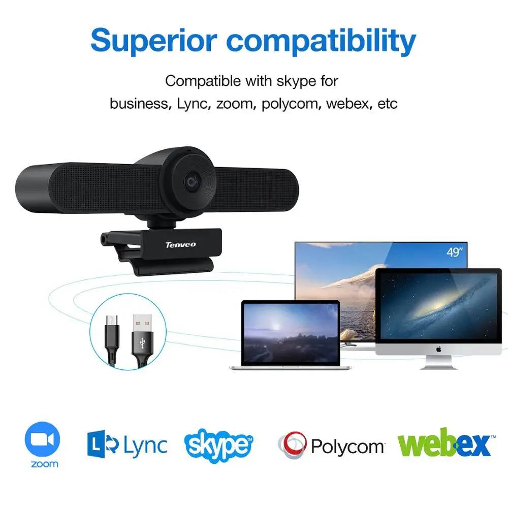 Special Offer Tenveo VA200 Pro 1920x1080 30Fps القرار كاميرا ويب مع ميكروفون ومكبر صوت للعيش مكالمة فيديو 124 ° Fov زاوية رؤية واسعة Discount 25% Today!