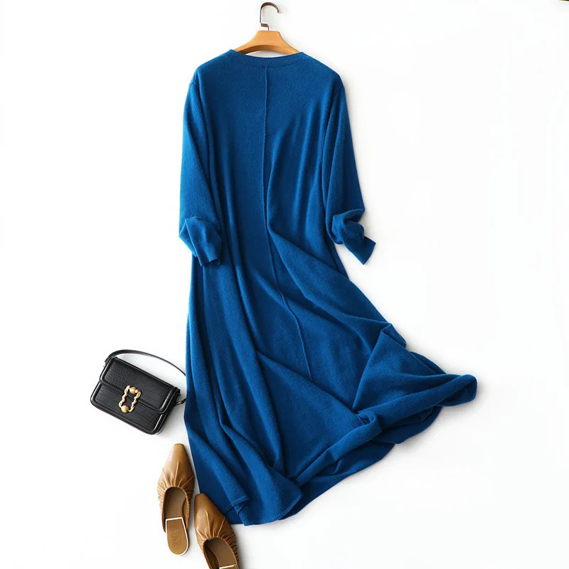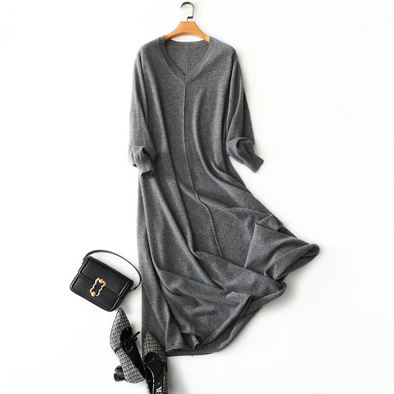 Special Offer 2020 شتاء جديد 100 الكشمير الخالص فستان المرأة سترة طويلة الحياكة طويلة الخامس الرقبة المرأة الملابس بالجملة Discount 32% Today!