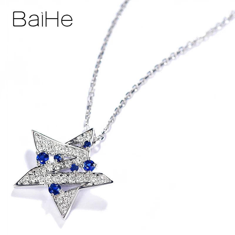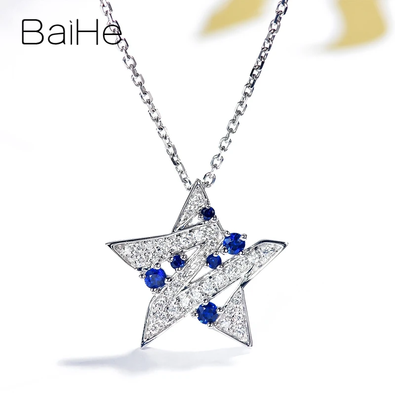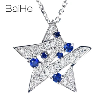 Special Offer BAIHE الصلبة 14K الذهب الأبيض 0.15ct الجولة الطبيعية الياقوت النساء العصرية غرامة مجوهرات أنيقة غرامة الياقوت الماس قلادة هدية Discount 23% Today!
